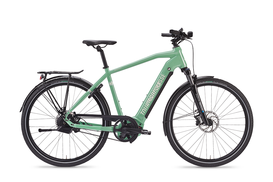 Ein sportlicher Begleiter für alle Lebenslagen: Das Broadway 45 ist die schnellere Version des Trekking-E-Bikes von Tour de Suisse. Denn der Antrieb aus der Bosch Performance Line Speed beschleunigt dieses S-Pedelec auf bis zu 45 km/h. Mit neuem 800 Wh ist auch die Akku-Kapazität an die höhere Geschwindigkeit angepasst. Für Fahrstabilität sorgt der langlebige und leichte Aluminiumrahmen. Die kraftvollen Scheibenbremsen sind auch hohen Geschwindigkeiten gewachsen – auf Wunsch sogar mit eBike ABS von Bosch. Als Schaltungsoptionen stehen im Konfigurator Kettenschaltungen von Shimano zur Auswahl. Ausserdem die Enviolo-Getriebenabe, sie bringt Automatik-Komfort ans Velo. Ebenfalls in der Automatikversion steht die Rohloff E-14 zur Auswahl. Die elektronische Version der Speedhub-Nabenschaltung bietet sagenhafte Robustheit, gepaart mit einem neuartigen Schaltkomfort und intelligenten Funktionen wie dem automatischen Zurückschalten beim Ampelstopp. Die Ausstattung umfasst alles, was Pendler im Alltag und darüber hinaus benötigen. Und das alles in einem eleganten Design mit zahlreichen Farboptionen!