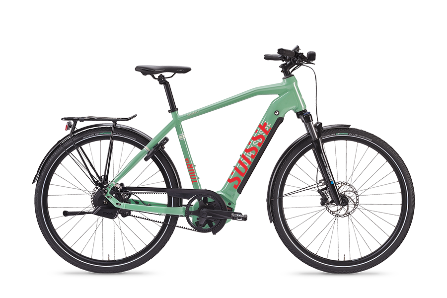 Ein sportlicher Begleiter für alle Lebenslagen: Das Broadway 45 ist die schnellere Version des Trekking-E-Bikes von Tour de Suisse. Denn der Antrieb aus der Bosch Performance Line Speed beschleunigt dieses S-Pedelec auf bis zu 45 km/h. Mit neuem 800 Wh ist auch die Akku-Kapazität an die höhere Geschwindigkeit angepasst. Für Fahrstabilität sorgt der langlebige und leichte Aluminiumrahmen. Die kraftvollen Scheibenbremsen sind auch hohen Geschwindigkeiten gewachsen – auf Wunsch sogar mit eBike ABS von Bosch. Als Schaltungsoptionen stehen im Konfigurator Kettenschaltungen von Shimano zur Auswahl. Ausserdem die Enviolo-Getriebenabe, sie bringt Automatik-Komfort ans Velo. Ebenfalls in der Automatikversion steht die Rohloff E-14 zur Auswahl. Die elektronische Version der Speedhub-Nabenschaltung bietet sagenhafte Robustheit, gepaart mit einem neuartigen Schaltkomfort und intelligenten Funktionen wie dem automatischen Zurückschalten beim Ampelstopp. Die Ausstattung umfasst alles, was Pendler im Alltag und darüber hinaus benötigen. Und das alles in einem eleganten Design mit zahlreichen Farboptionen!